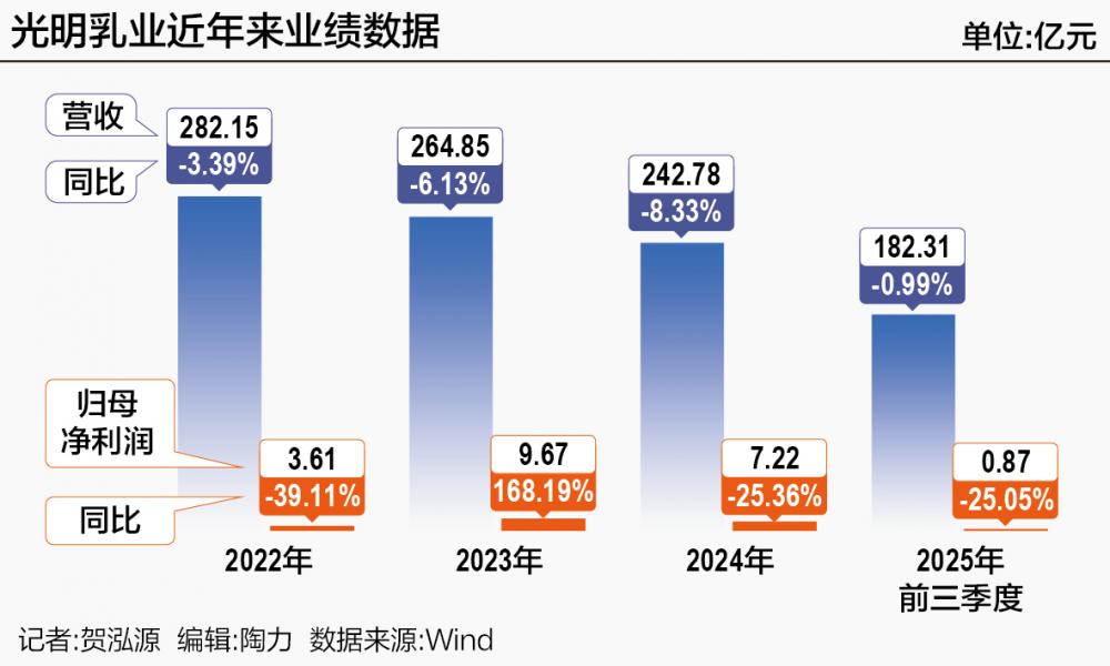第三季度,光明海外营收同比下降7.63%至24.7亿元。受此影响,光明乳业期内营收57.59亿元,同比增长1.04%,其中液态奶营收35.4亿元,同比下降8.44%。